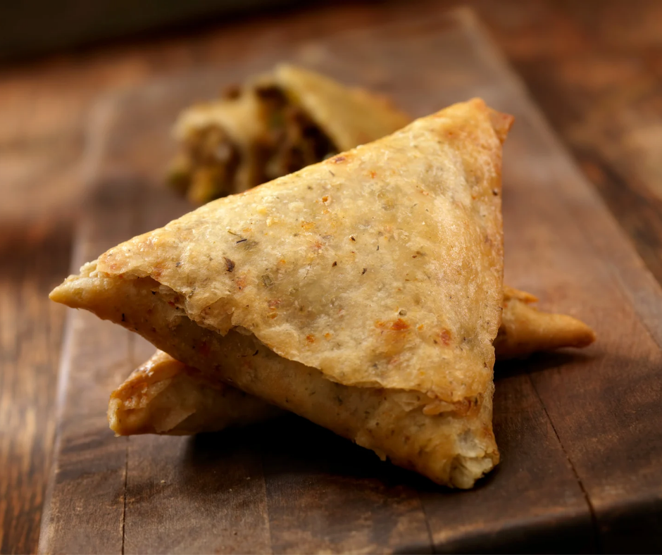 Samoussas au canard confit et trompettes de la mort, chutney d'oignons